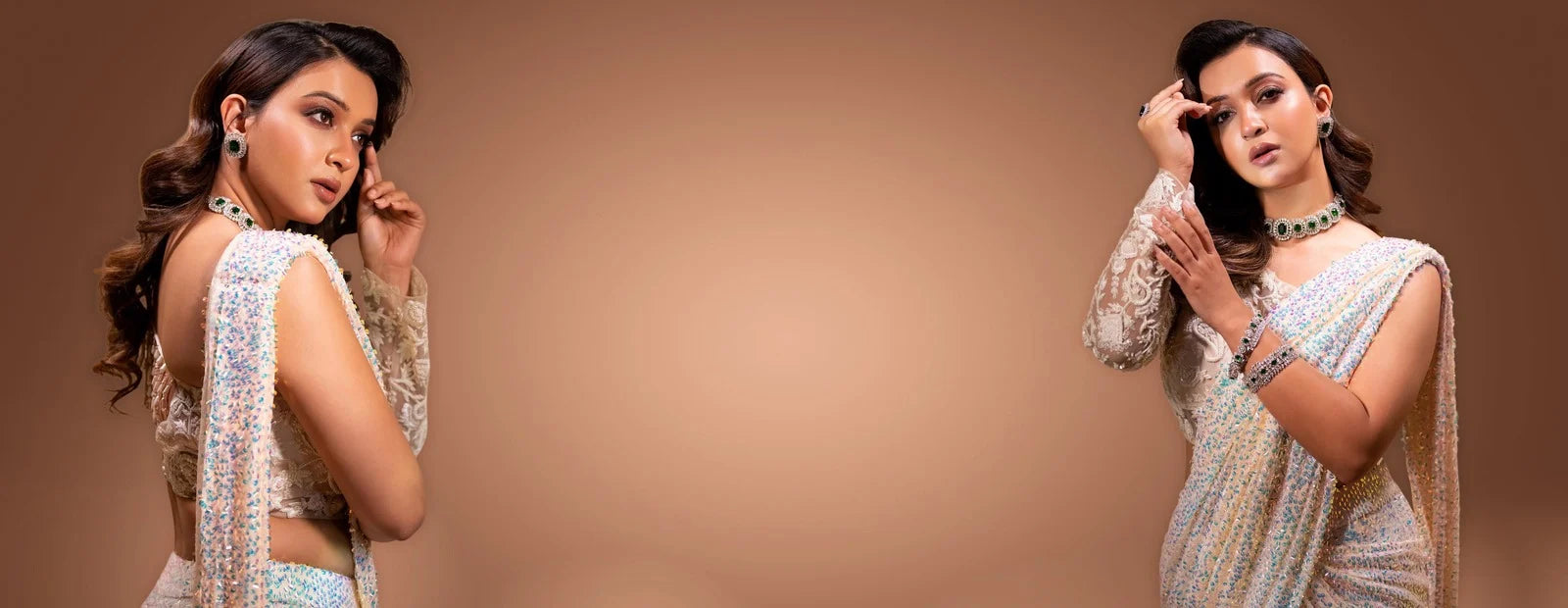 Perfect for those who cherish tradition with a contemporary twist, this saree can be styled for grand celebrations or intimate gatherings, glowing with every movement and reflecting exquisite Indian craftsmanship.
