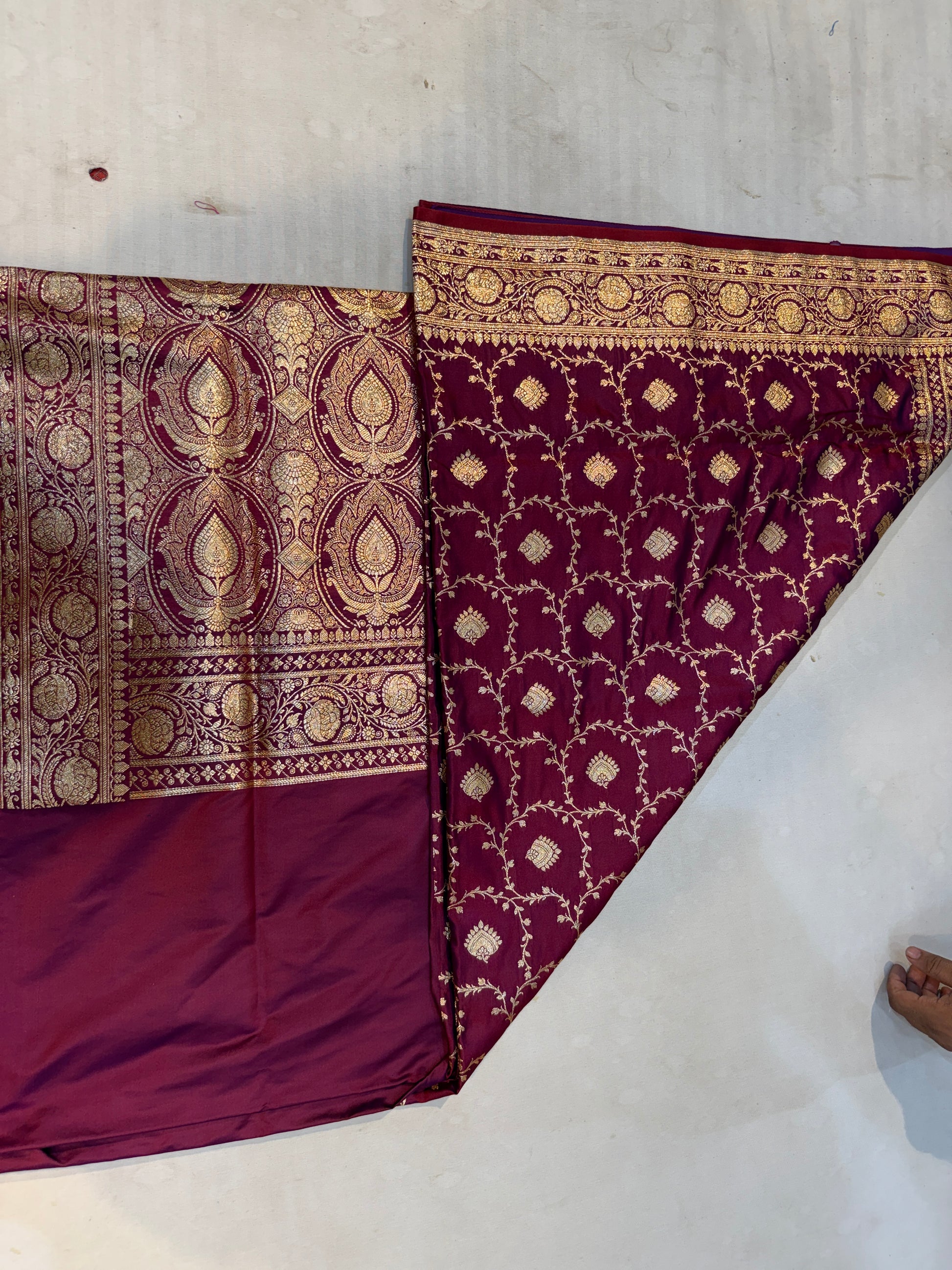 Design: Handwoven Banarasi booti motifs, ornate floral border