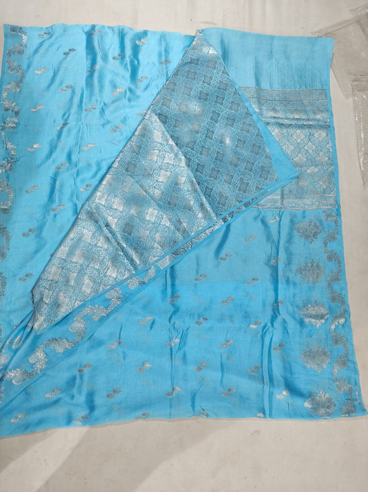 Regular price Rs. 4,999.00Regular priceUnit price / perRs. 5,999.00Sale price Rs. 4,999.00Enhance your wardrobe with this sky blue Banarasi silk saree, masterfully handwoven and adorned with intricate silver zari motifs and a lavish ornamental border. The luminous silk fabric paired with detailed craftsmanship makes this saree a true reflection of age-old weaving traditions, offering a radiant charm perfect for weddings, festive occasions, or grand celebrations. Exquisitely versatile, this saree pairs elegantly with both classic and contemporary attire, ensuring that you embody the rich heritage and modern grace of Indian textiles wherever you go.