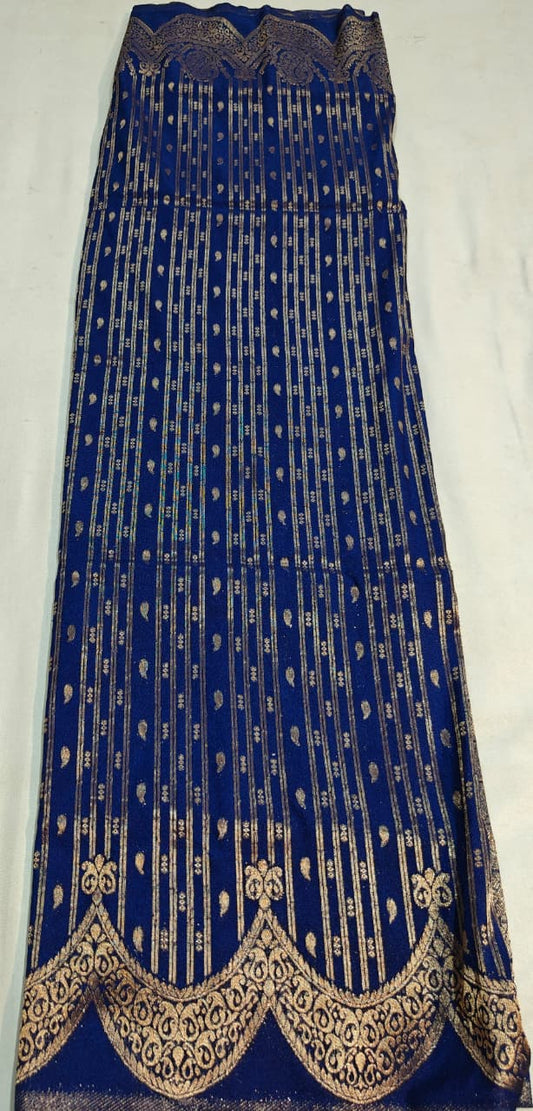 Royal Blue Banarasi Silk Dupatta with Golden Zari Motifs
